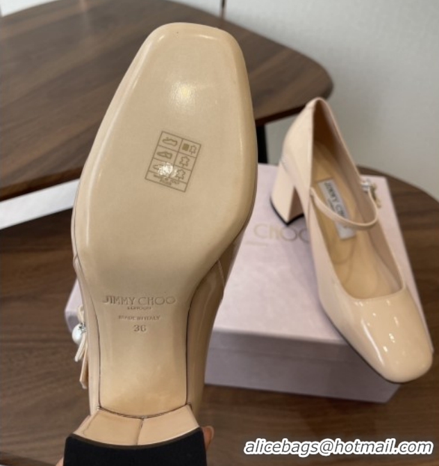 > Shoes Plaza > Jimmy Choo Shoes > Best Price Jimmy Choo Jenson 65 Pumps with Strap in Patent Leather Beige 5111504