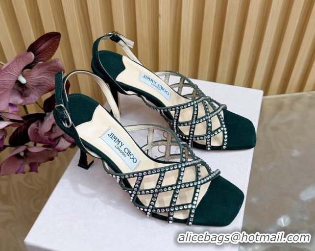 Luxury Jimmy Choo Suede and Strass Heel Sandals 9cm JC020701 Green 2026