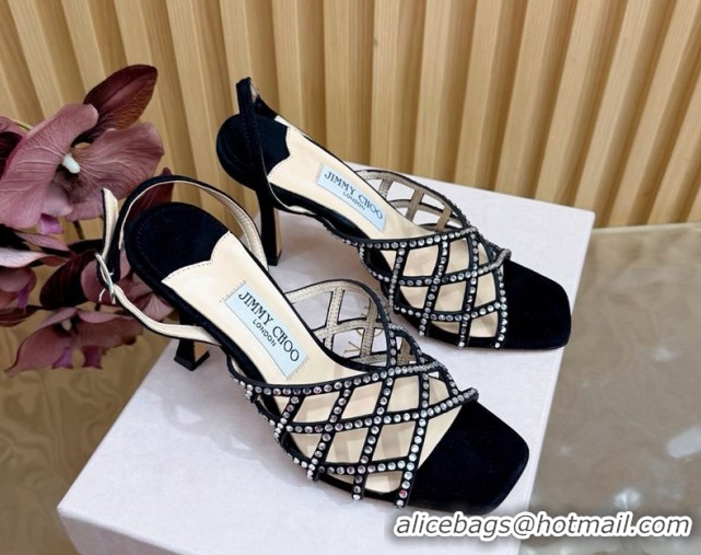 Best Price Jimmy Choo Suede and Strass Heel Sandals 9cm JC020701 Black 2026