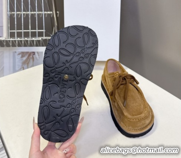 > Shoes Plaza > Loewe Shoes > Best Price Loewe Faro Lace-up Shoes in Suede Dark Beige 50823078