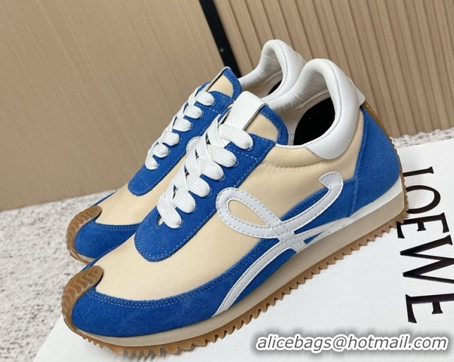 Best Price Loewe Flow Runner Sneakers in Nylon and Suede Beige/Blue 0226015