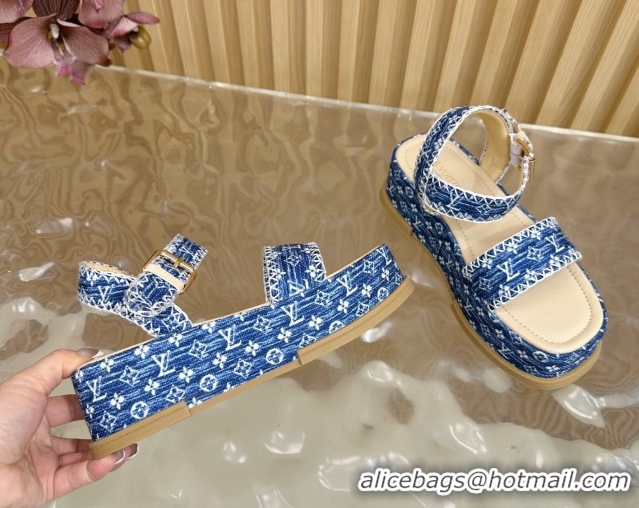 Purchase Louis Vuitton Maya Platform Sandals 7cm in Monogram Jacquard Denim Blue 1AHNOK 0829127