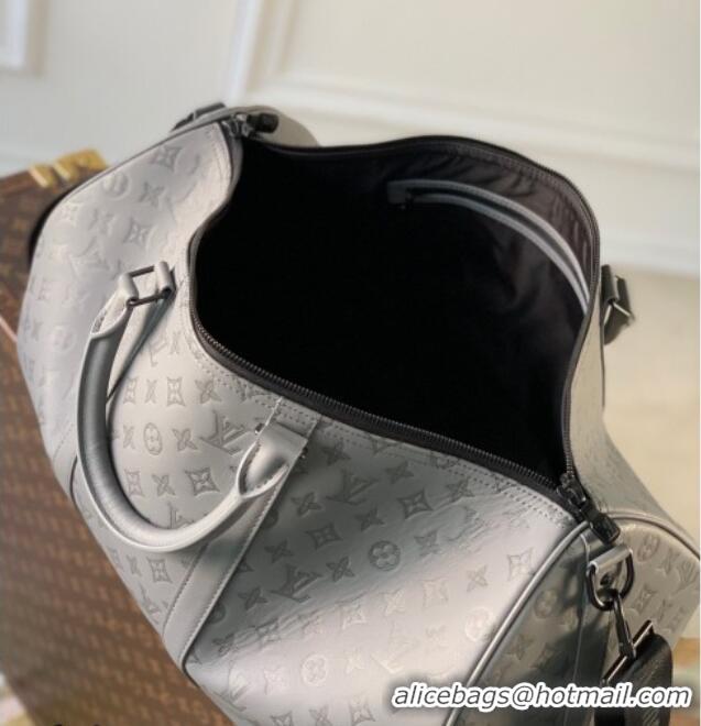 Best Price Louis Vuitton Men's Keepall Bandoulière 50 Travel Bag in Monogram Shadow Leather M46117 Anthracite Grey 2026