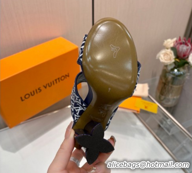 Best Price Louis Vuitton Silhouette Heel Slides Sandal 10cm in Monogram Embroidery Blue LV121901 1219129