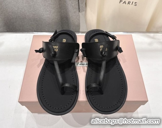 Good Quality Miu Miu Leather Thong Flat Sandals MM022702 Black 2026