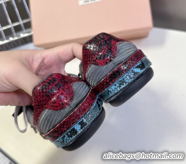 Best Price Miu Miu Gymnasium Sneakers in Python Print Leather and Technical Fabric Grey/Blue 1024109