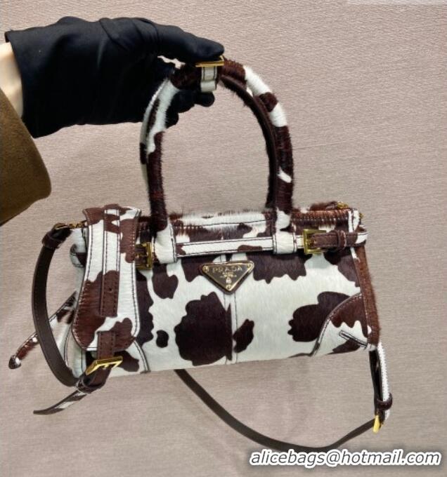 Best Price Prada Bonnie mini printed pony hair handbag 1BA486 White/Dark Brown 2026
