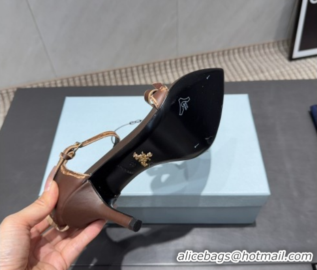 Best Price Prada Leather Bow Heel Sandals 8.5cm Brown 1X196O 2026