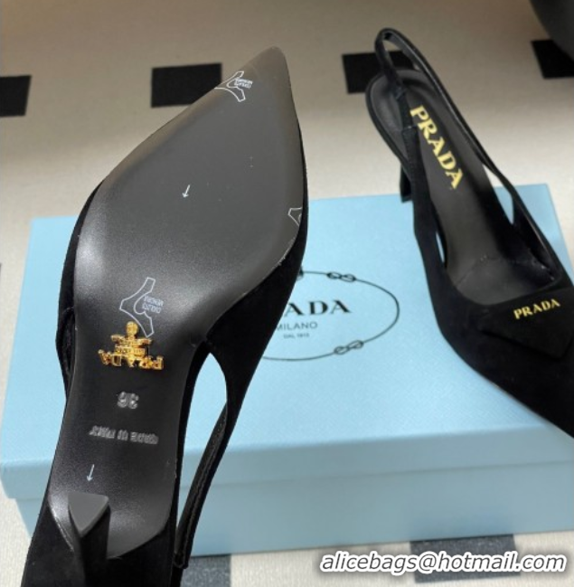 Good Quality Prada Suede Slingback Pumps 7.5cm Black 2025 1I901M 1027035