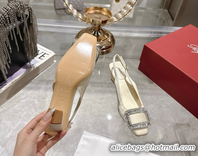 Purchase Roger Vivier Belle Vivier Slingbacks Pump 4.5cm in Satin and Strass Buckle White RV121201 1212005 2026