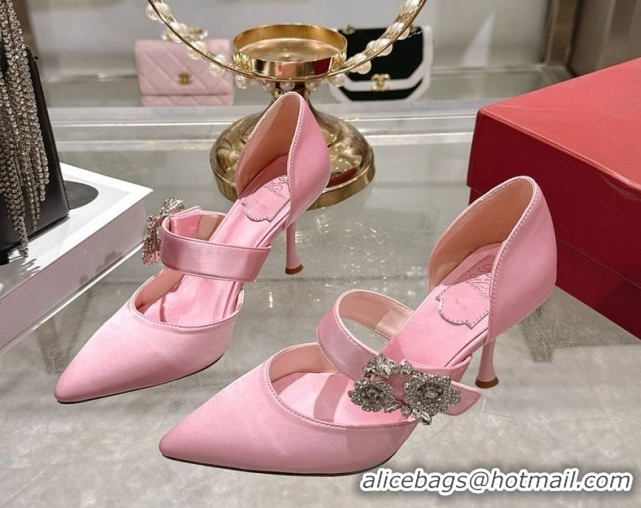 Best Price Roger Vivier Bouquet Strass Flower Pumps 8.5cm in Satin 0225042 Pink 2026
