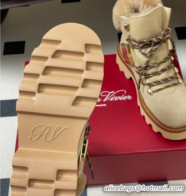 Best Price Roger Vivier Viv' Rangers Truck Booties 5cm in Suede and Wool Beige RV121203 1212021 2026