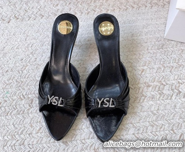 Low Price Saint Laurent Jerry Heel Slides Sandal 6cm in Shiny Leather Black 2026 8696549