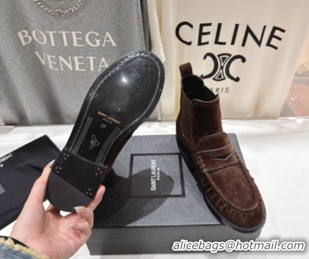> Shoes Plaza > Yves Saint Laurent Shoes > Best Price Saint Laurent Le Flat Chelsea Booties in Suede Dark Brown YSL121302 1213047