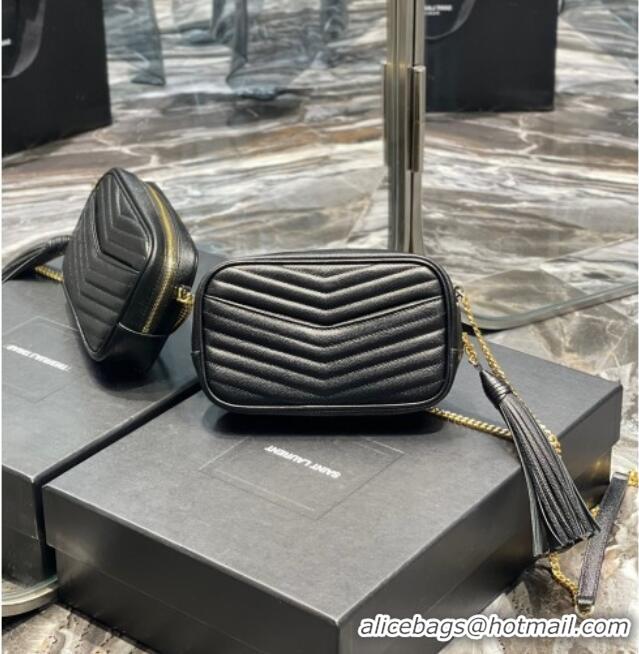 Best Price Saint Laurent Lou Mini Camera Bag with Tassel in Matelasse Grained Leather 585040 Black/Gold 2025