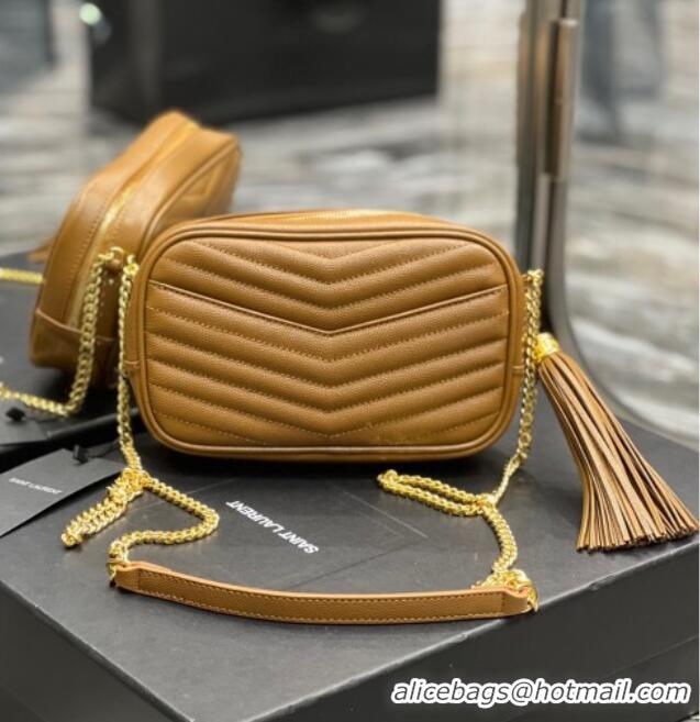 Best Price Saint Laurent Lou Mini Camera Bag with Tassel in Matelasse Grained Leather 585040 Brown 2025
