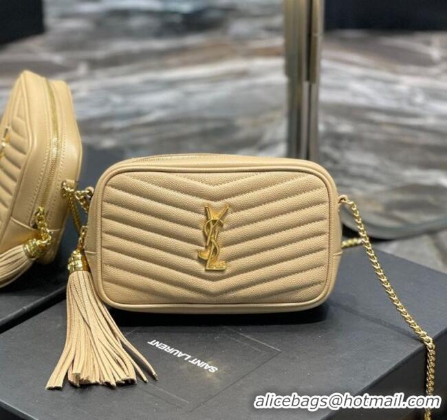 Top Grade Saint Laurent Lou Mini Camera Bag with Tassel in Matelasse Grained Leather 585040 Apricot 2025