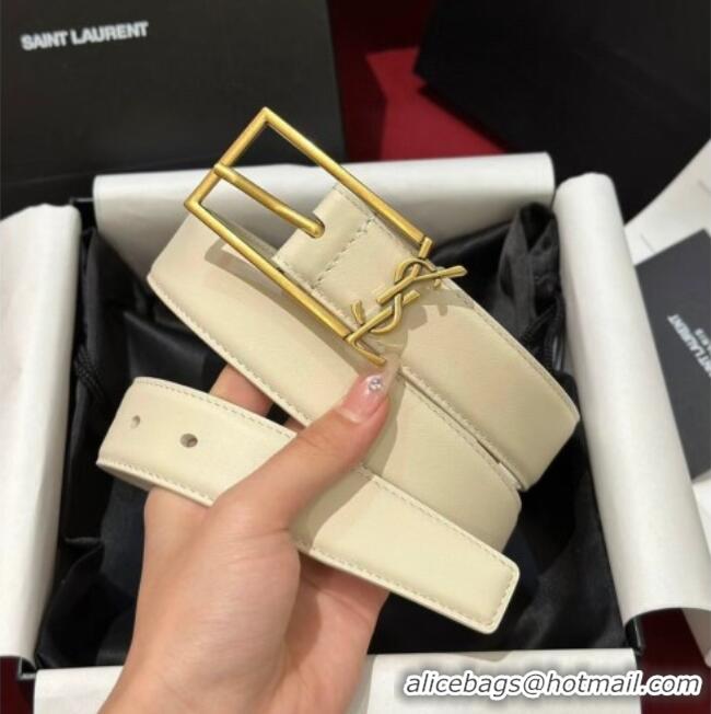 Best Quality Saint Laurent Women's Supple Calfskin Leather Belt 2.5cm with Maxi YSL Buckle 25060 White/Aged Gold 2025