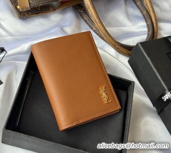 Best Price Saint Laurent Tiny Cassandre Credit Card Wallet in Grained Leather 668736 Brown/Gold 2025