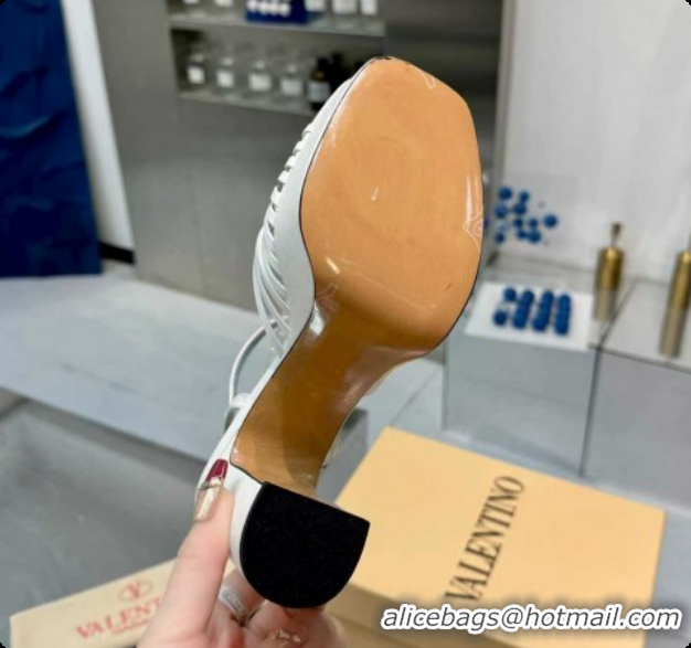 Good Quality Valentino Heart Calfskin Leather Platform Sandals 11cm White 2025 VLTN121501 1215033
