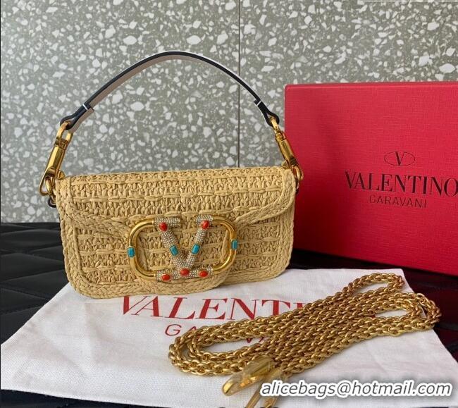 Best Price Valentino Loco Small Shoulder Bag in Raffia Straw with Jewel Logo 5016 Beige/White 2024
