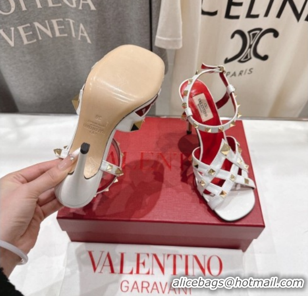 Purchase Valentino Studdy Heel Sandals 9.5cm in Calfskin Leather White 0224040