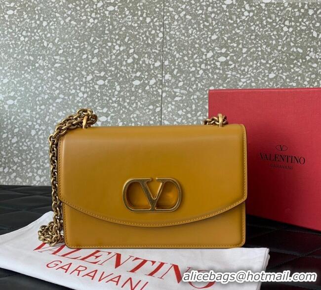 Best Price Valentino Vain shoulder bag in shiny calfskin with metallic VLogo Signature 2016 Yellow 2024