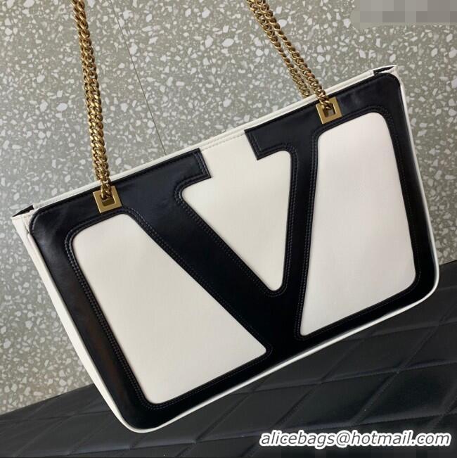 Best Price Valentino Viva Superstar Medium Nappa Leather Shopping Bag with Maxi VLogo 0013 Black/White 2025
