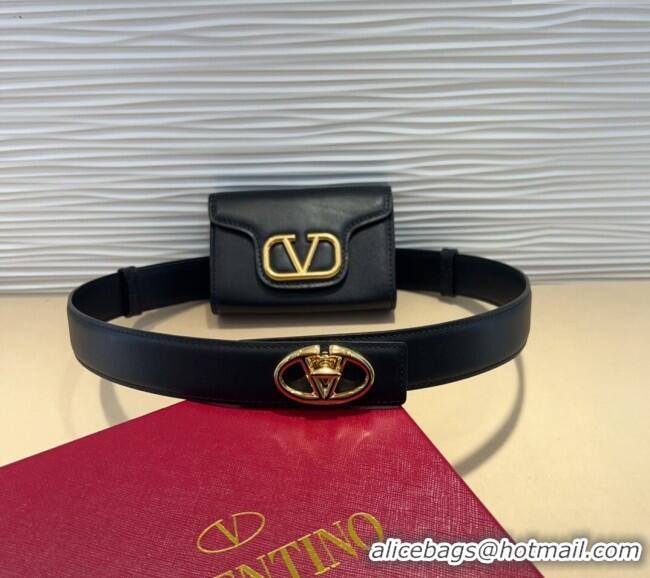Grade Promotional Valentino VLogo Signature Leather Belt 7054 Black 2025