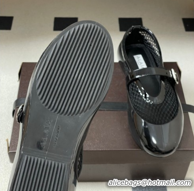 Top Design Alaia Ballets Flat in Fishnet & Rubber Overshoes Black AL020704