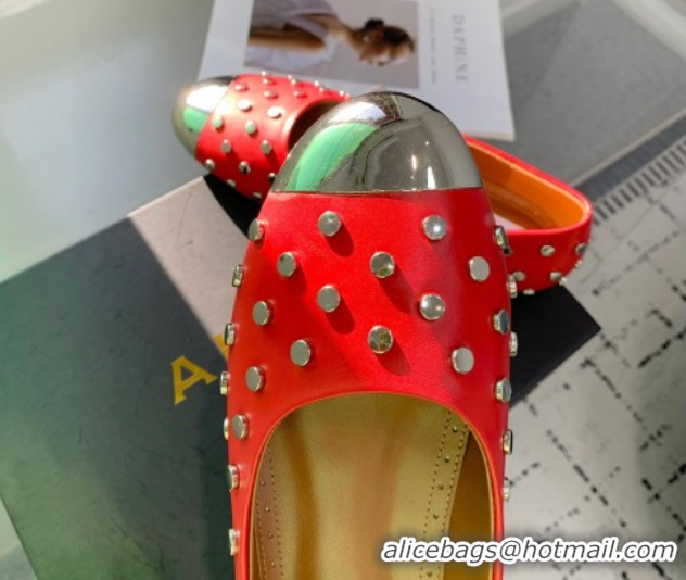 Most Popular Alaia Leather Ballet Flat with Silver-Tone Toe and Studs Red 1223059