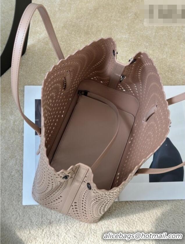 Best Product Alaia Mina 32 Large Tote Bag in Vienne Openwork Calfskin Leather 8819L Light Pink 2025