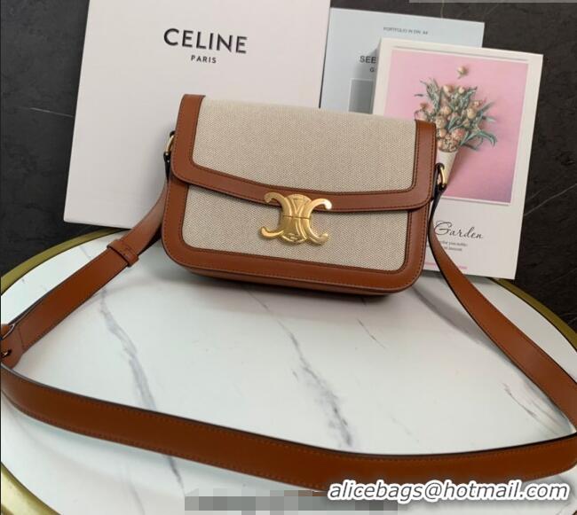 Best Product Celine Classique Triomphe Bag in Linen Canvas and Calfskin Leather 187366 Beige 2026