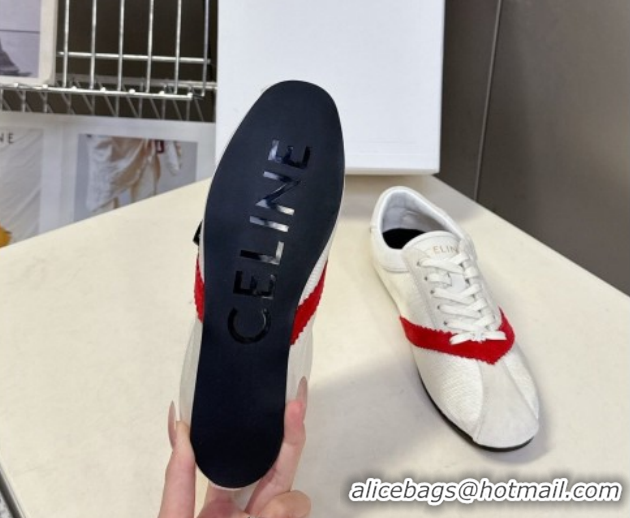 Best Product Celine The Flat Sneakers in Gros Grain, Velvet, Suede and Leather 0227042 White/Red 2026