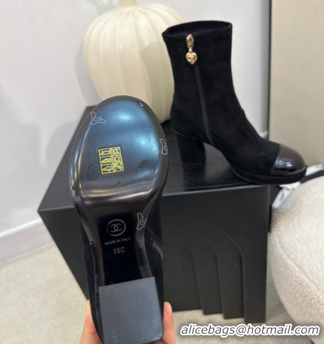 Pretty Style Chanel Suede and Patent Leather Platform Ankle Boots Black 2025 CH110409 1104049