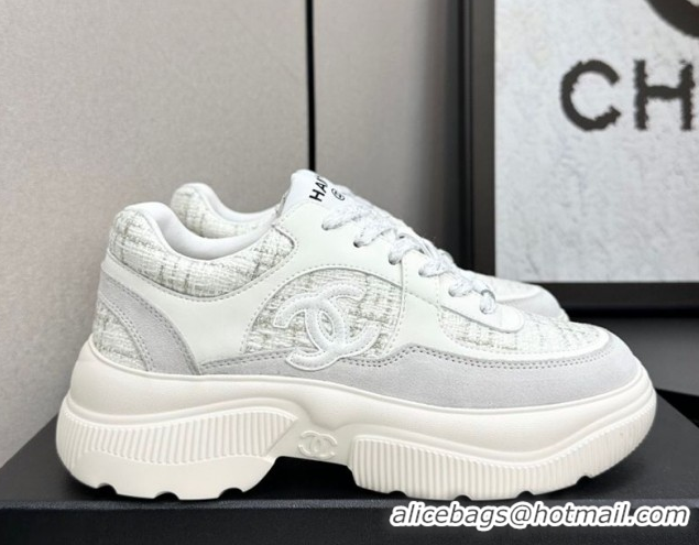 Grade Quality Chanel Calfskin Leather, Suede and Tweed Platform Sneakers White05 2025 CH110102 1101005