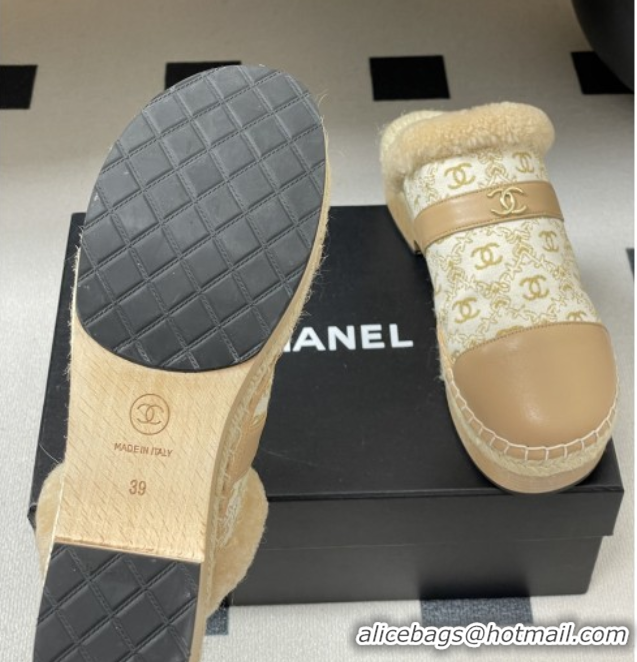 Best Grade Chanel Lambskin & Fabric Mules with Shearling CH102001 Beige 2025