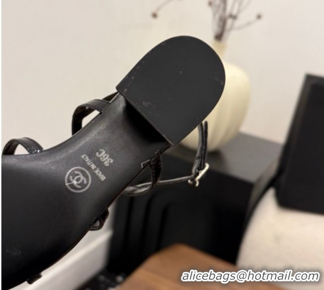 Good Quality Chanel Lambskin Leather Low Heel Strap Sandals with Bloom G46964 Black 2026