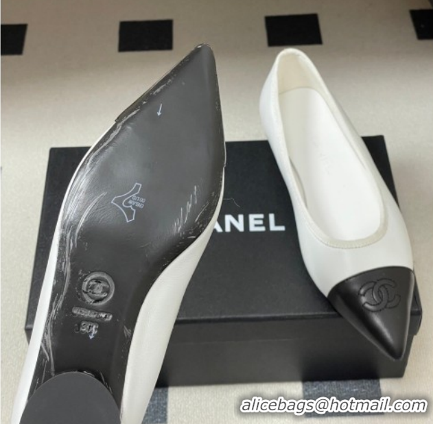 Shop Duplicate Chanel Lambskin Leather Pointed Ballet Flats G47081 White/Black2 2026