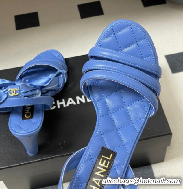 Shop Duplicate Chanel Lambskin Leather & Silk Heel Sandals CH122304 Blue 2026