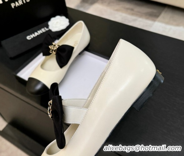 Most Popular Chanel Lambskin Leather Mary Janes Ballet Flats with Bow White 2025 CH110303 1103070