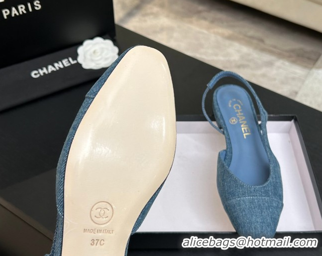 Good Quality Chanel Blue Denim Slingbacks Flat G31319 2026