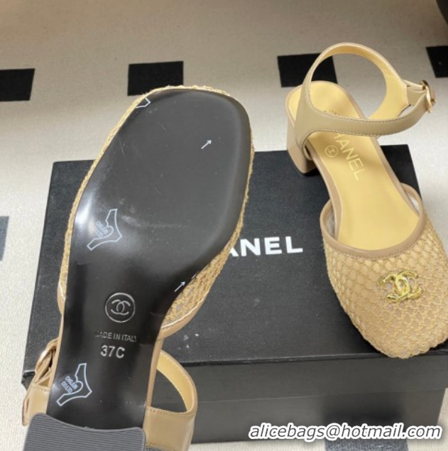 Shop Duplicate Chanel Mesh & Lambskin Leather Heel Sandals 4.5cm CH030612 Beige 2026