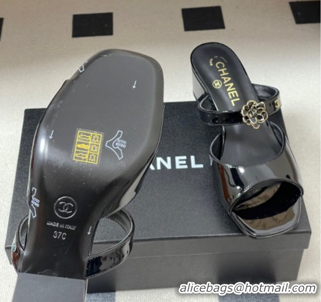 Popular Style Chanel Patent Calfskin Leather Heel Slides Sandal 4.5cm with Camellia CH030613 Black 2026