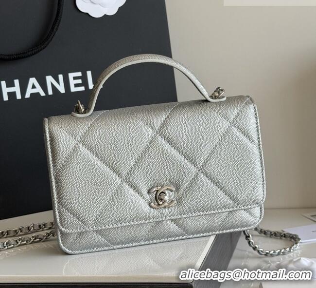 Best Product Chanel Wallet On Chain with Top Handle Grained Shiny Calfskin AP4931 Silver 2026