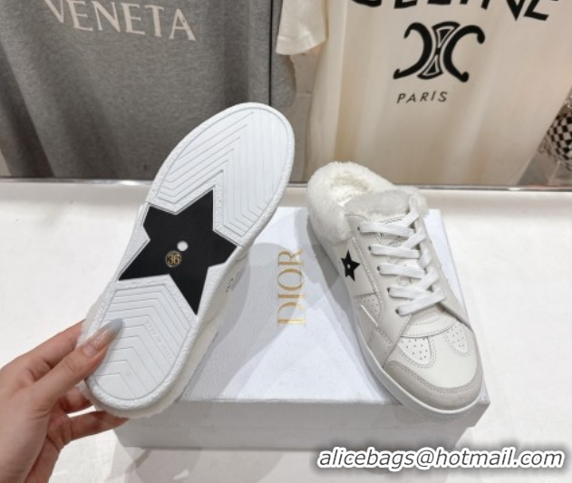 Durable Dior Star Sneaker Mules in Calfskin Leather and Wool White 51029062