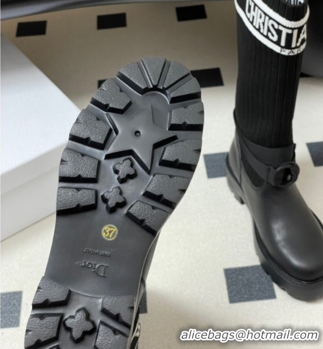 Your Position: Home > Shoes Plaza > Chrisitan Dior Shoes > Pretty Style Dior D-Major High Boots in Black Calfskin with Black and White Technical Knit 1029011
