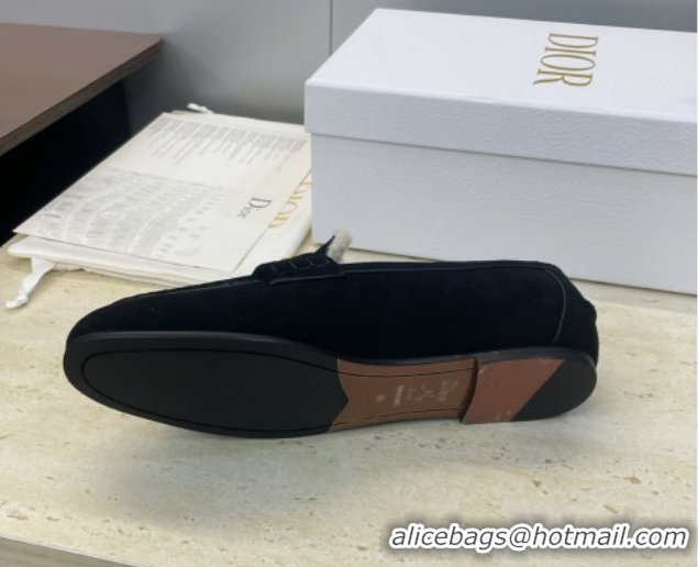 Best Product Dior DiorAlps Boy Flat Loafers in Suede and Shearling Black DR121603 1216100
