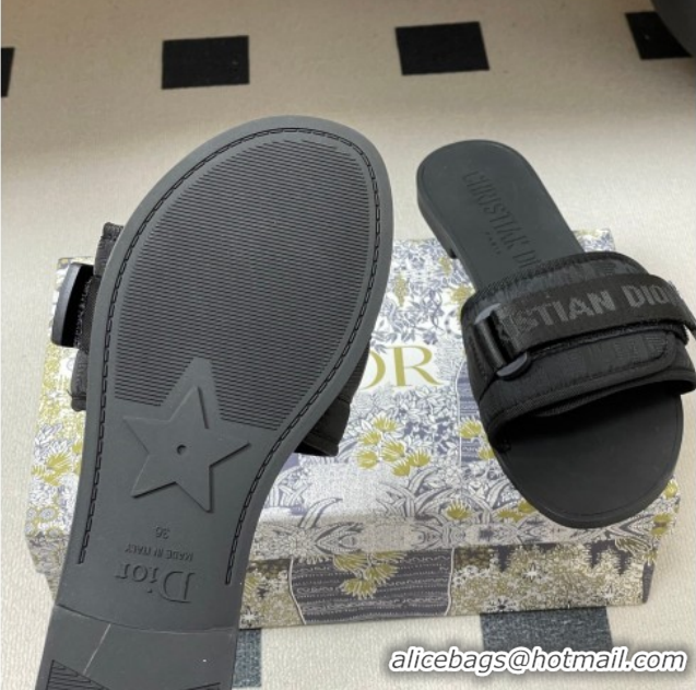 Classic Hot Dior Dio(r)evolution Flat Slides Sandal in Technical Fabric with Strap Oblique/Black 2026 0302093