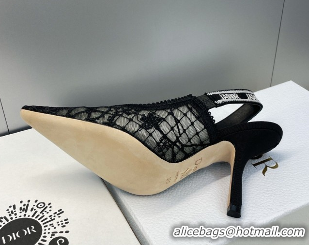 Good Product Dior J'Adior Slingbacks Pump 9.5cm in Transparent Mesh Embroidered with Millefiori Motif Black 2026 0302040